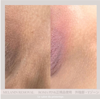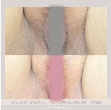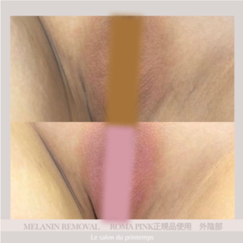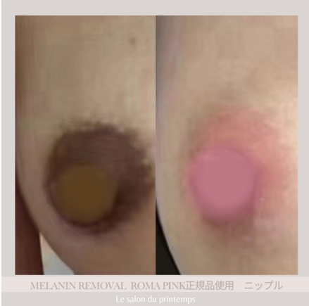 唇/ニップル(乳輪・乳頭)/脇/Yゾーン/Iライン/Oライン/お尻の下部/膝または肘...などの黒ずみ・くすみ・色素沈着を、1回の施術で肌本来のピンク色の色調へと戻すことのができる美容施術です。